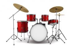 架子鼓由低音大鼓、踩镲、小軍鼓、桶子鼓(3-7個..